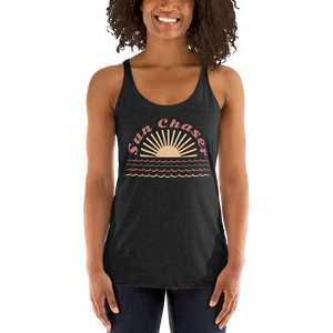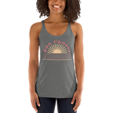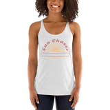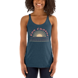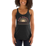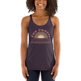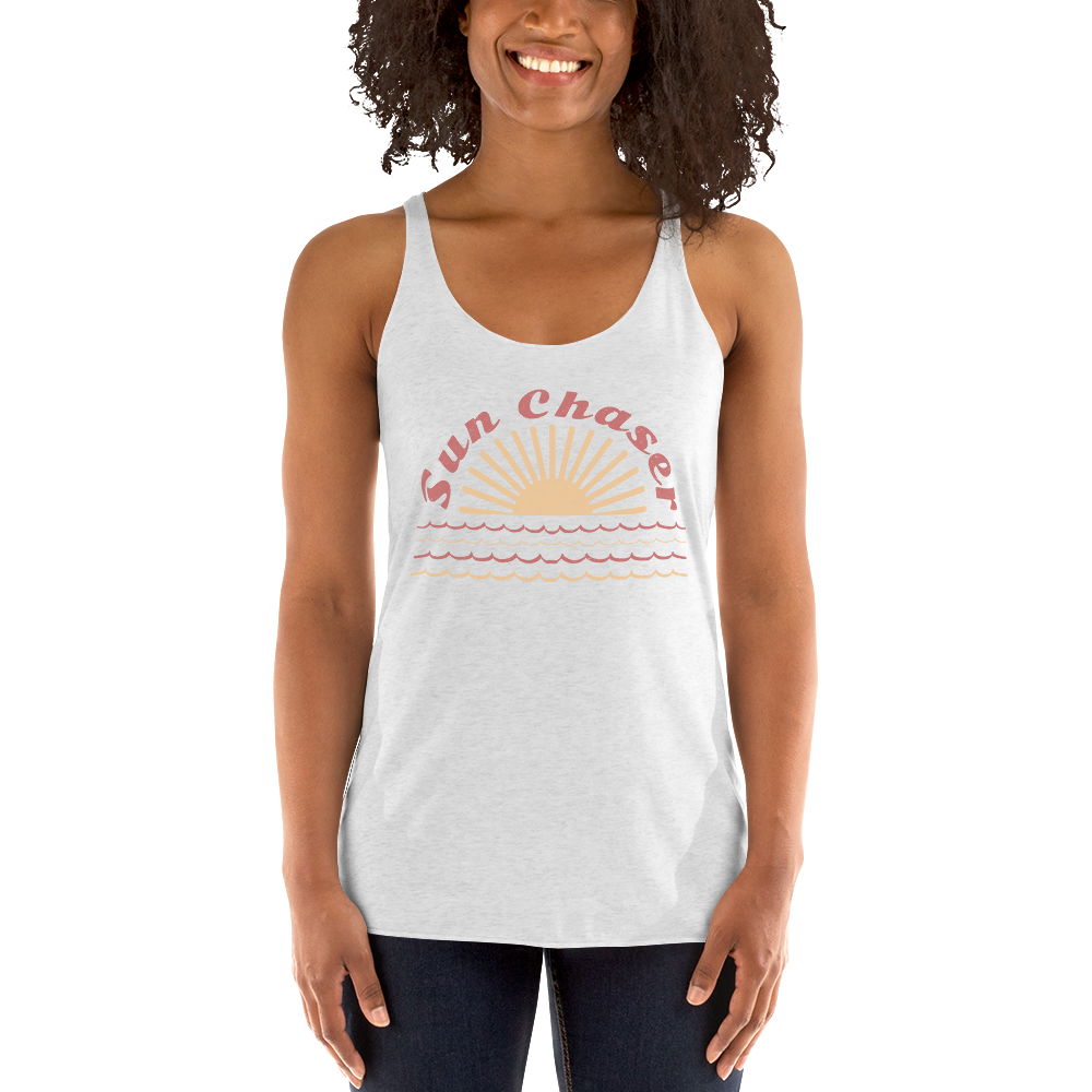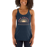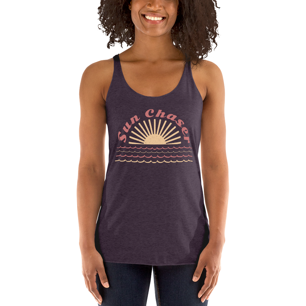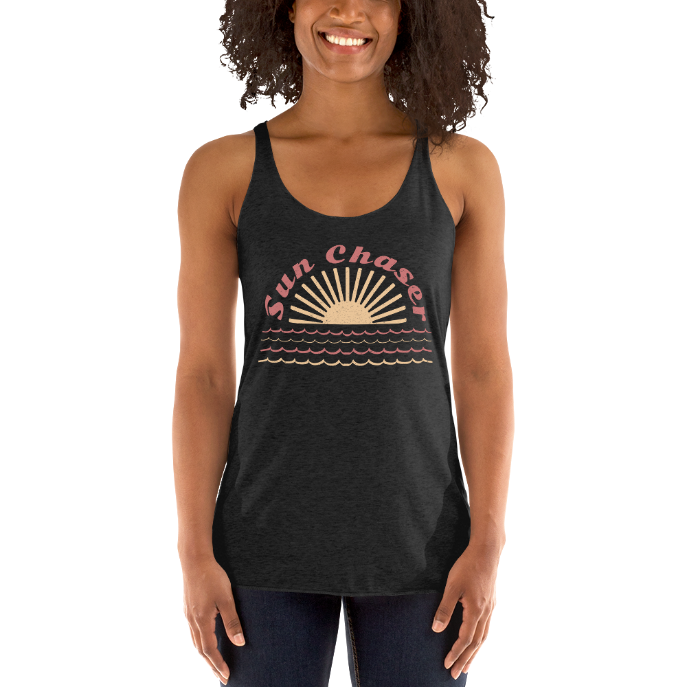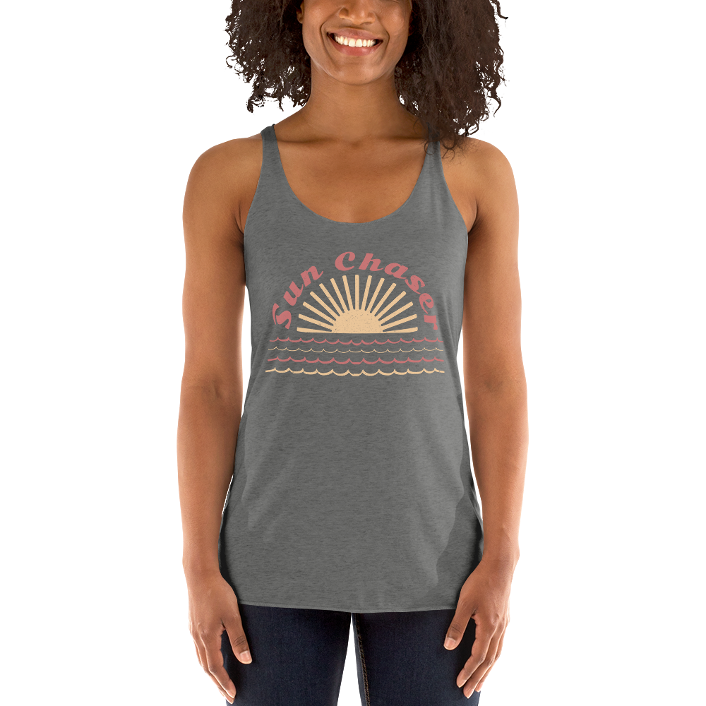 For the sun worshipers who never want those salty, sunny days to end. This racerback tank is soft, lightweight, and form-fitting with a flattering cut and raw edge seams for an edgy touch.