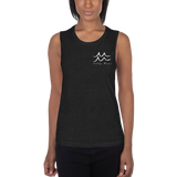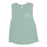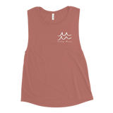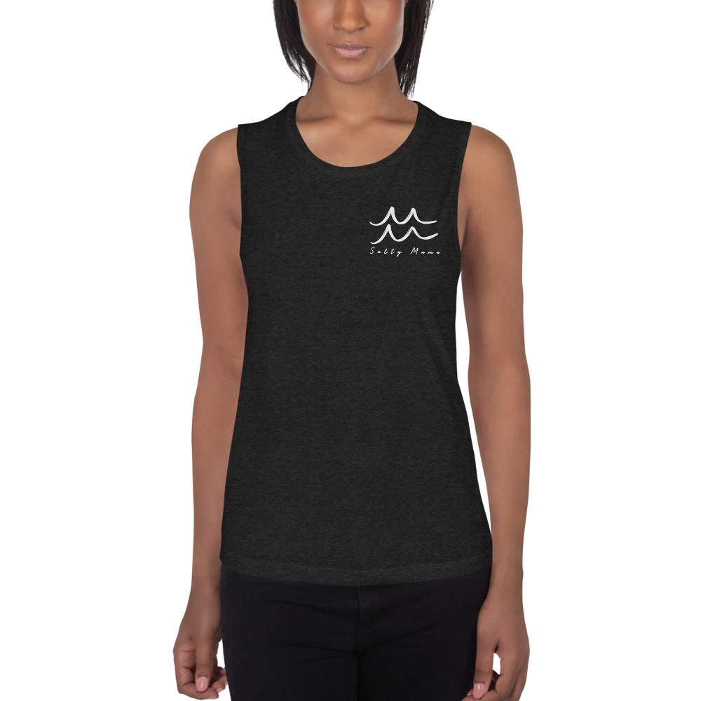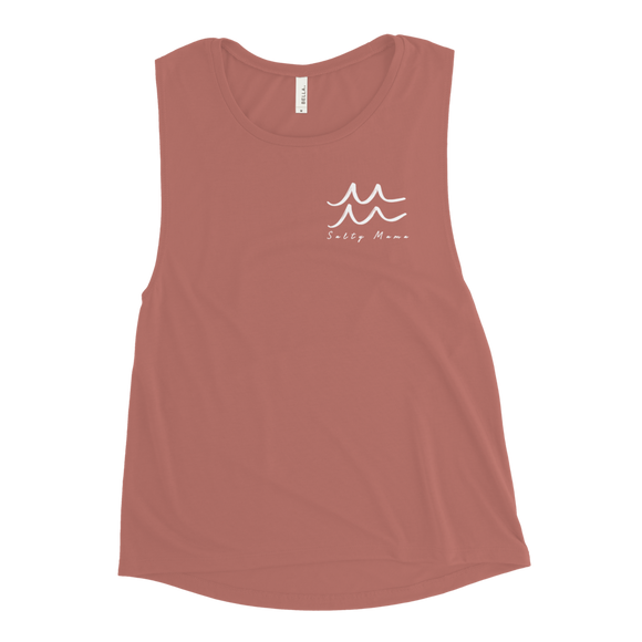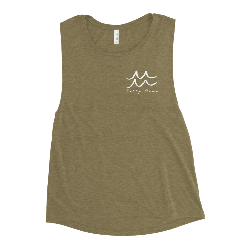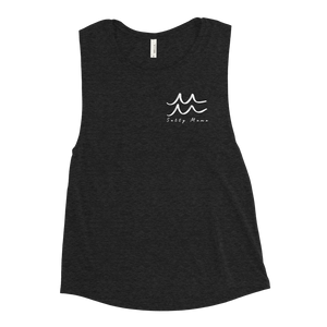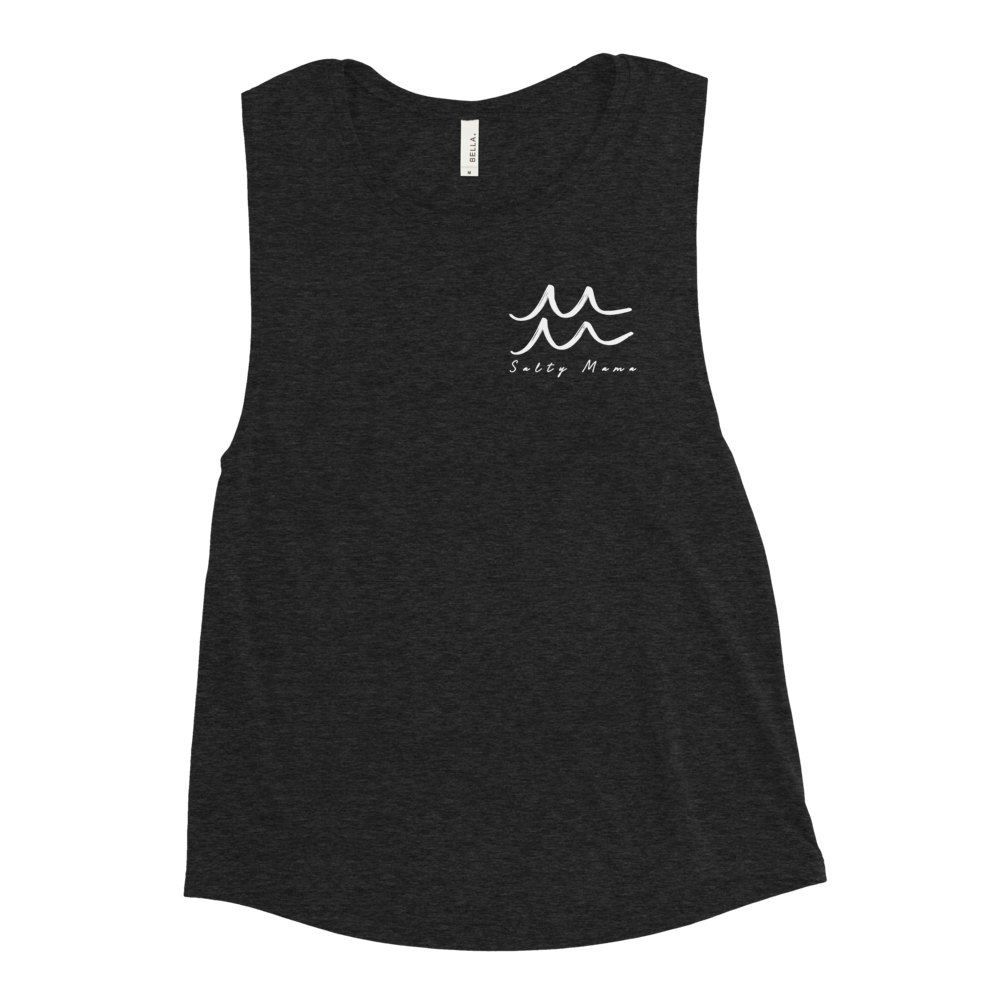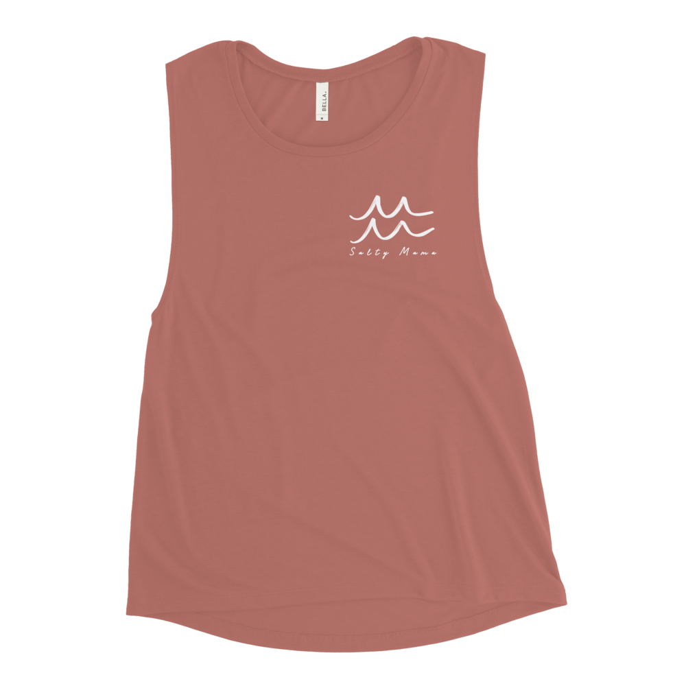 This comfortable muscle tank is soft and flowy with low cut armholes for a relaxed look.